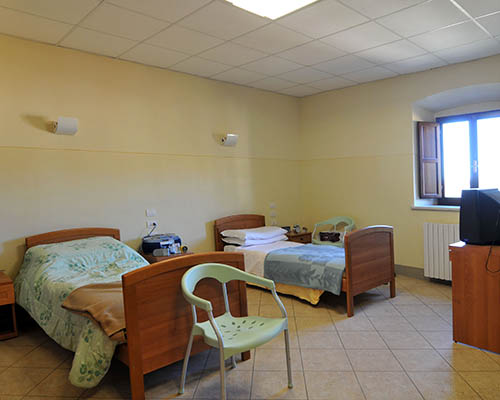 Le camere con bagno, doppie o singole, sono attrezzate al fine di rendere il più agevole possibile il soggiorno, sono inoltre personalizzabili e predisposte all’allacciamento di TV.